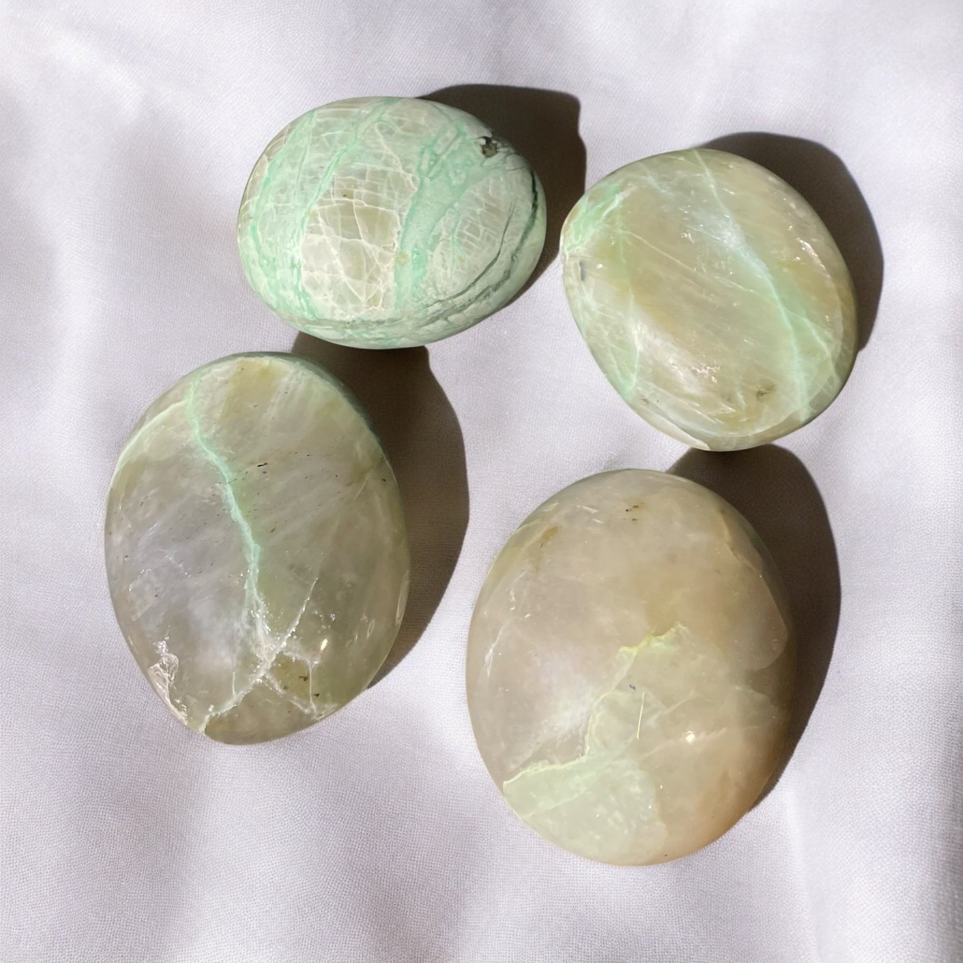 - Color: Typically shades of green, ranging from pale to deep green, often with a translucent or pearlescent sheen.