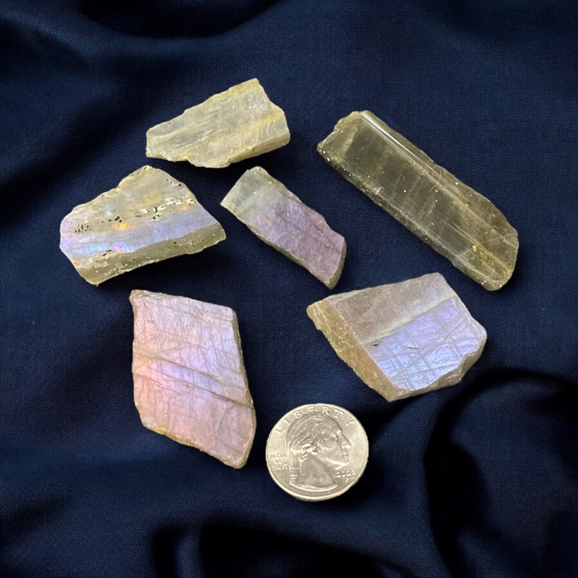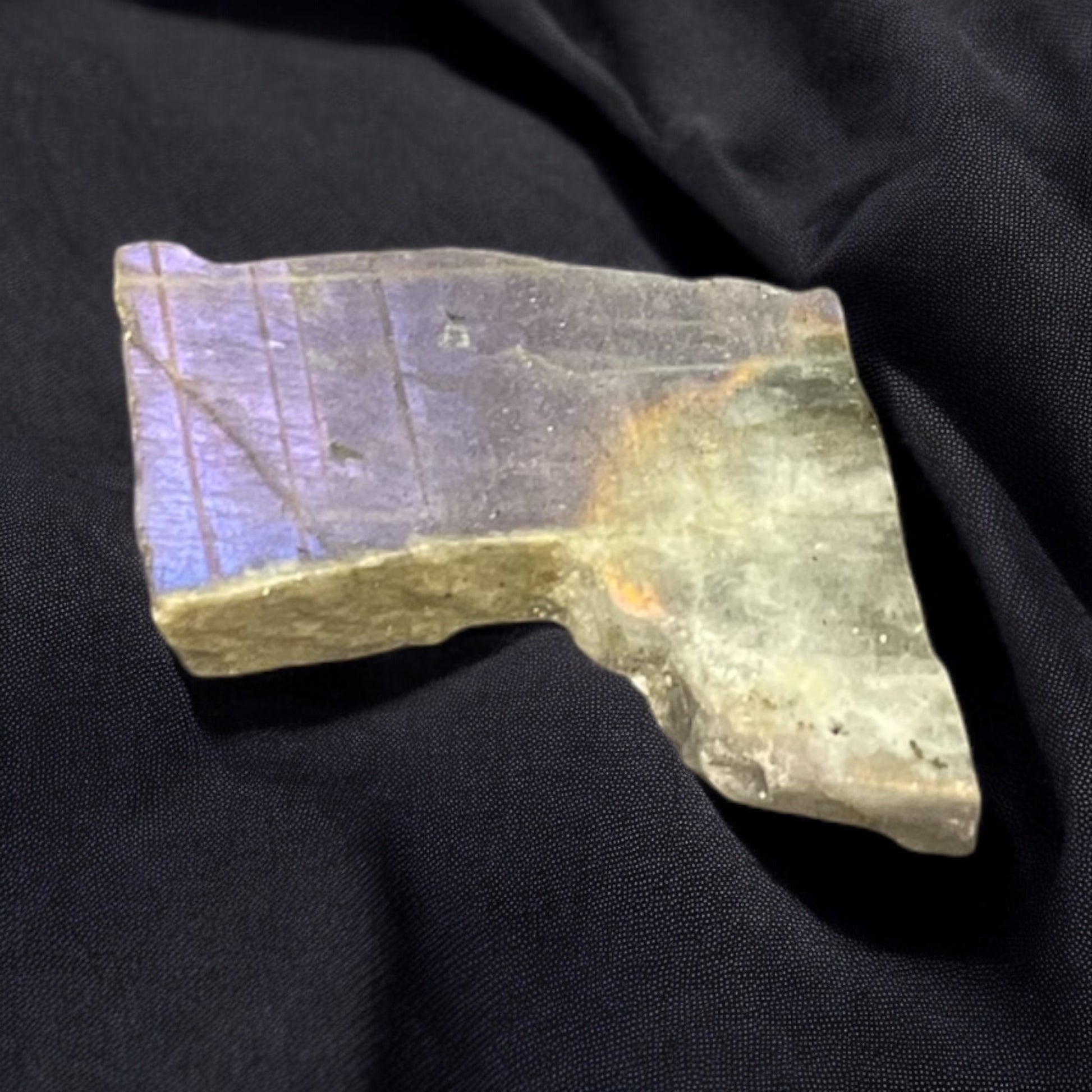 - Color: Deep violet or purple with flashes of blue, green, or gold, displaying the characteristic labradorescence.