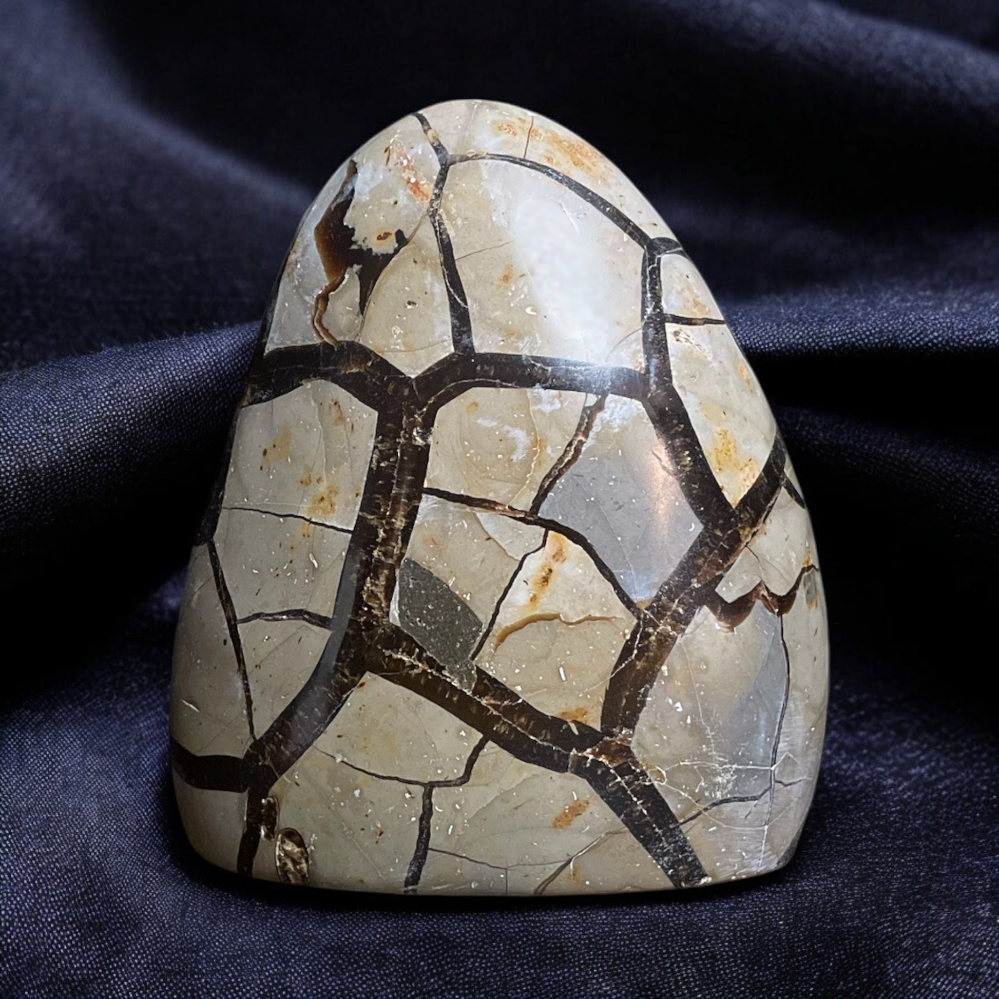 Septarian Dragon, often referred to as Septarian or Dragon Stone, is a unique stone that features a combination of minerals, primarily calcite, aragonite, and clay. Its name comes from the Latin word "septum," meaning "seven," due to the seven different components that often form its characteristic patterns. This stone is associated with grounding, nurturing, and transformation, symbolizing the power and wisdom of the earth.